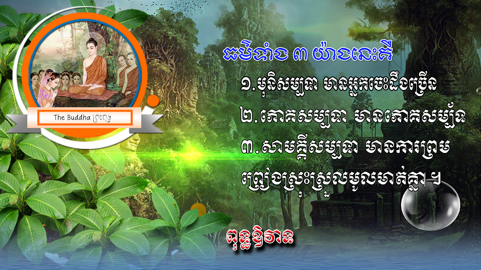 The third element, which is “Be rich with many people, have many dependents,” is that a businessman must find people who are wealthy, have many friends, and have many close friends, so that it will be easy, because all of them will help to promote, help start, help provide resources as capital, help provide support in times of various kinds of events. Be a person who has soft words, sweet and pleasant, friendly, and kind to people who come to you or to others. Do not act arrogantly or arrogantly, so that you will be loved and appreciated by others. Be a person who has a good moral character, is honest, and does not become a person who has a bad reputation by playing various games, gambling, etc. Be a person who spends his wealth in moderation, does not spend too much, does not waste too much, so that those who have a lot of wealth will dare to help, start with various things, help with capital, etc. A businessman who has many dependents will grow his wealth quickly. He is a person who is loved by many people, even friends, knows how to make people in all walks of life fall in love, have faith, and gain trust, even to the point of struggling to make a profit together. Whether you work in the fields, farms, businesses, wages, government jobs, or other fields, you will be able to grow your wealth and become wealthy because of your hard work and intelligence, as mentioned earlier. That is why there is a Buddhist proverb: "Udhata Vinte Thanam, the rich will always get wealth.” This Buddhist proverb is in line with the ancient Khmer proverb that “Knowing from learning, there are two ways to earn, and being poor from being lazy.” Teaching the way of business or having to learn in the home of a businessman who has been proficient for a long time. When listening and learning as they say, this is what wisdom is born of. This is called wisdom born from listening to learning. As for thinking, a merchant or businessman must think carefully and carefully to find the reason for trading clearly, to understand whether there is a small profit or a large loss. If you don’t think for yourself, you should ask those who have lost business before you decide to do something. As for the ancient proverb that says “Think carefully,” it means that no matter what, you must think carefully about the loss and profit before doing it. When you think carefully like this, wisdom is born. This is called wisdom born from thinking. As for progress, it is doing it often. If you do it occasionally, it is not called progress. Only when you do it many times, many times, or do it often, it is called progress. Do it and do it again until you get used to it. If you have done it often, it will tell you to understand gradually. The previous is an example for the next. Like someone who has been doing a business for a long time, wisdom always comes to their mind, so that they can know other businesses in order. You have never done it, you will always be confused and not wise in business. Even those who have learned to be proficient in business schools, because if you have not done it, you cannot know everything. Only after doing it often can you understand more and more. This is called wisdom born of growth. A businessman who listens, learns, and grows as mentioned above will always find a large amount of wealth.