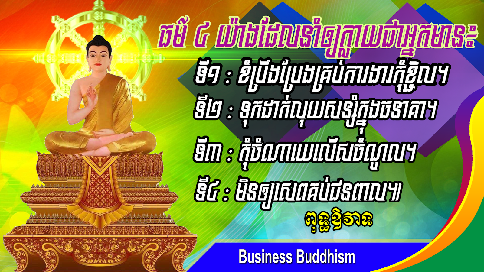 Of course, each of us wants to have and want, and wanting to have, no possession comes easily, unless we work hard, persevere and be frugal. That is why we all try to work and do various things as much as we can, no matter how small the work or business is, everyone still struggles hard to become rich. Preah Viriyadhamman Pov Sot has a saying that if you know these 4 Pali words, you will be rich in business, namely the letter "U", the letter "A", the letter "K", and the letter "Sa".